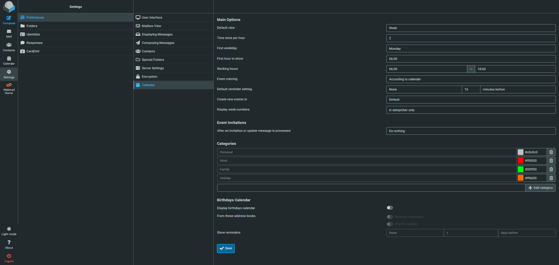 All your calendar settings are located here — including options to edit your custom calendars, adjust default event settings, and choose what information is displayed within your calendar.