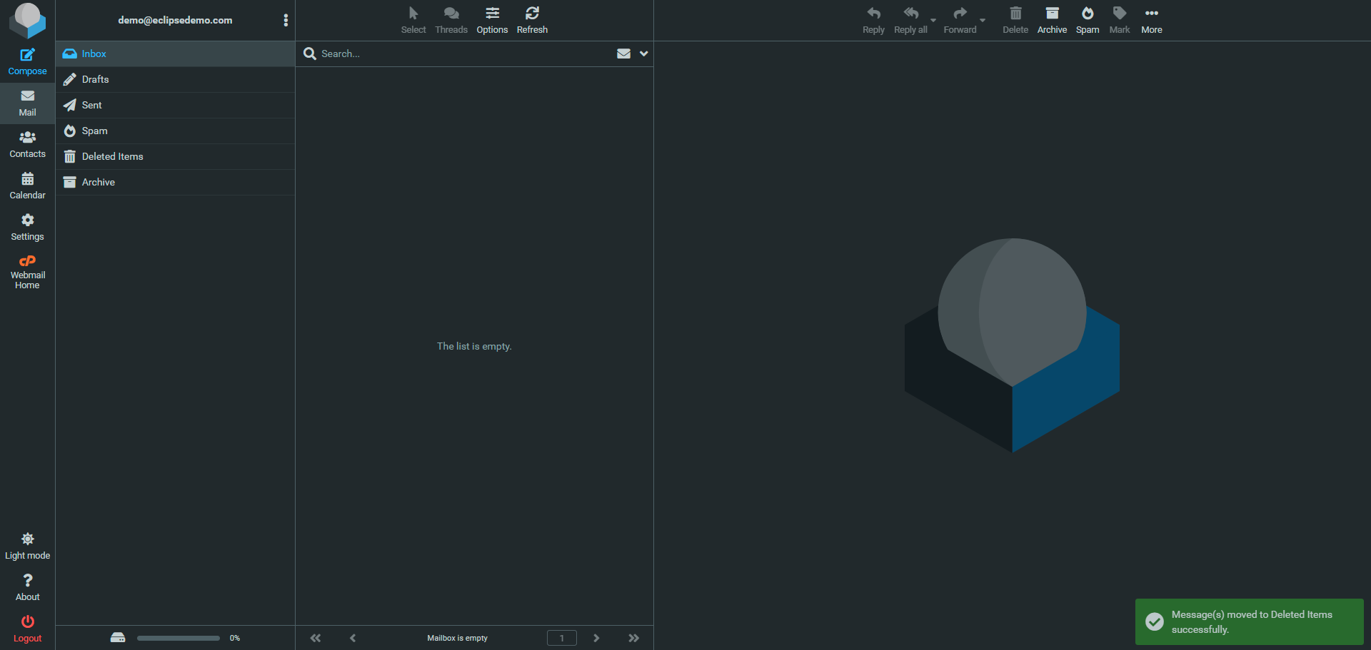 Once logged in, you will either be taken directly to your mailbox, which may look similar to the example below: